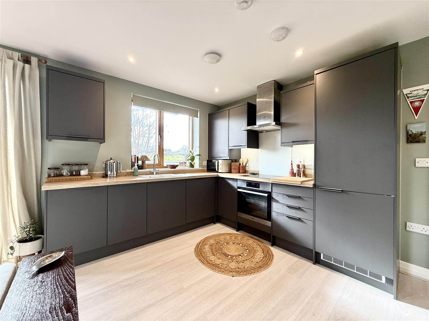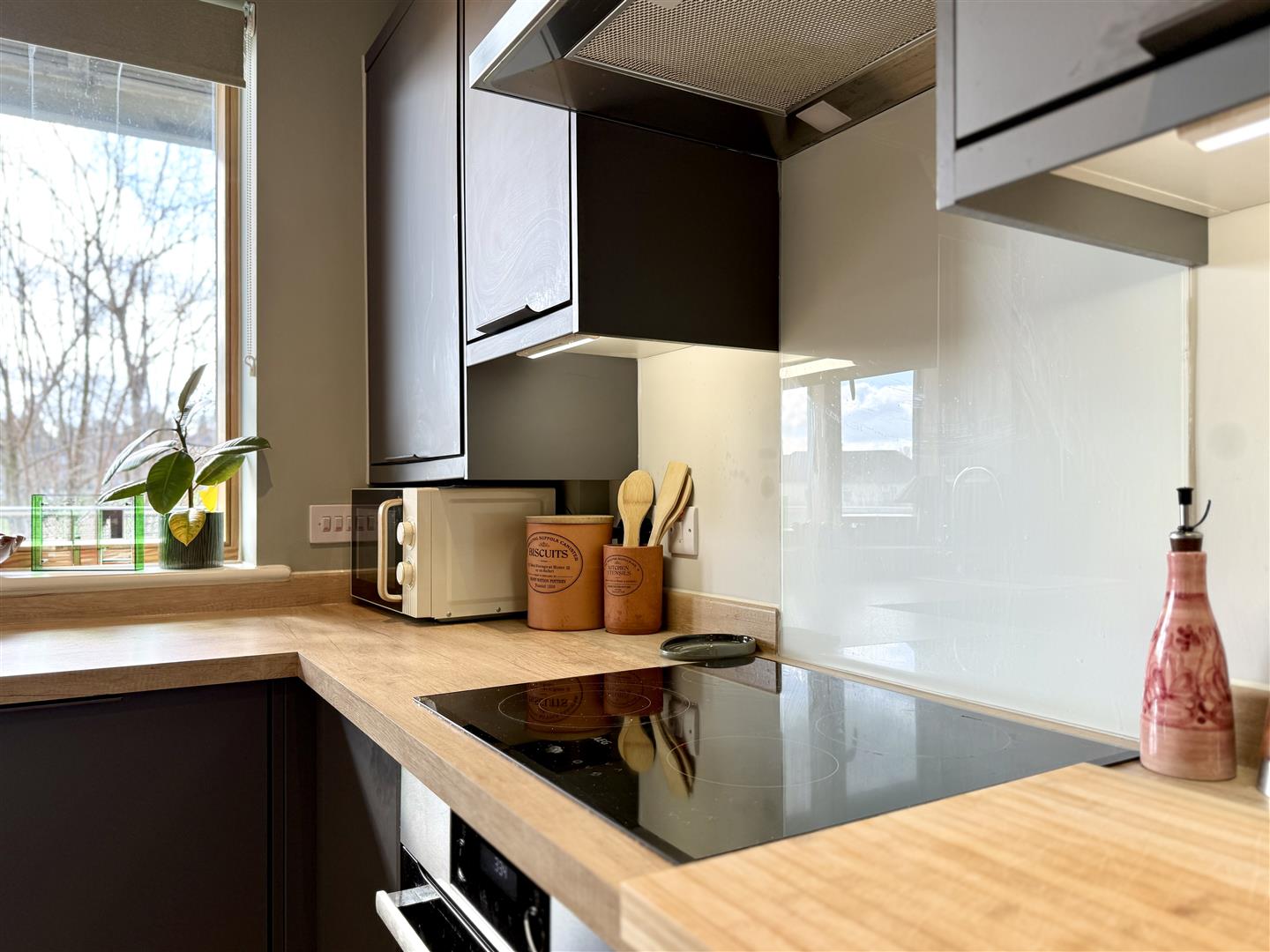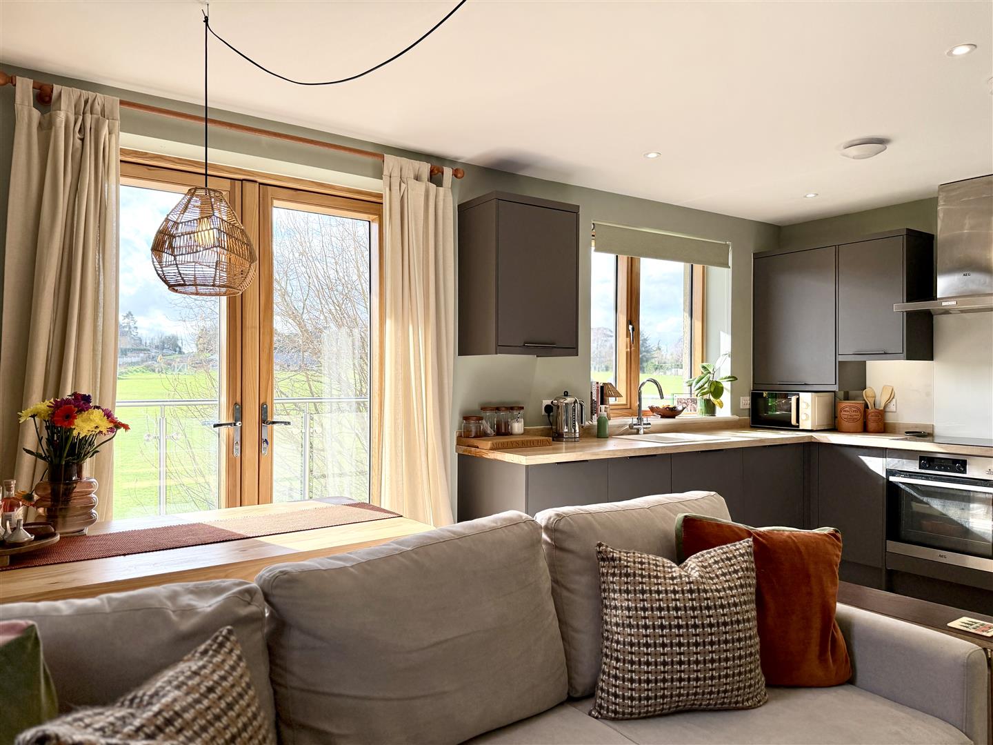 Beautifully presented throughout, the home centres around a generous open-plan kitchen/dining/living space, fitted with sleek contemporary cabinetry and integrated AEG appliances, flowing effortlessly into a bright living and dining space with access to a private enclosed balcony, perfect for morning coffee or evening unwinding. The double bedroom benefits from built-in wardrobes, while a modern three-piece bathroom completes the accommodation. An allocated off-road parking space adds further practicality.